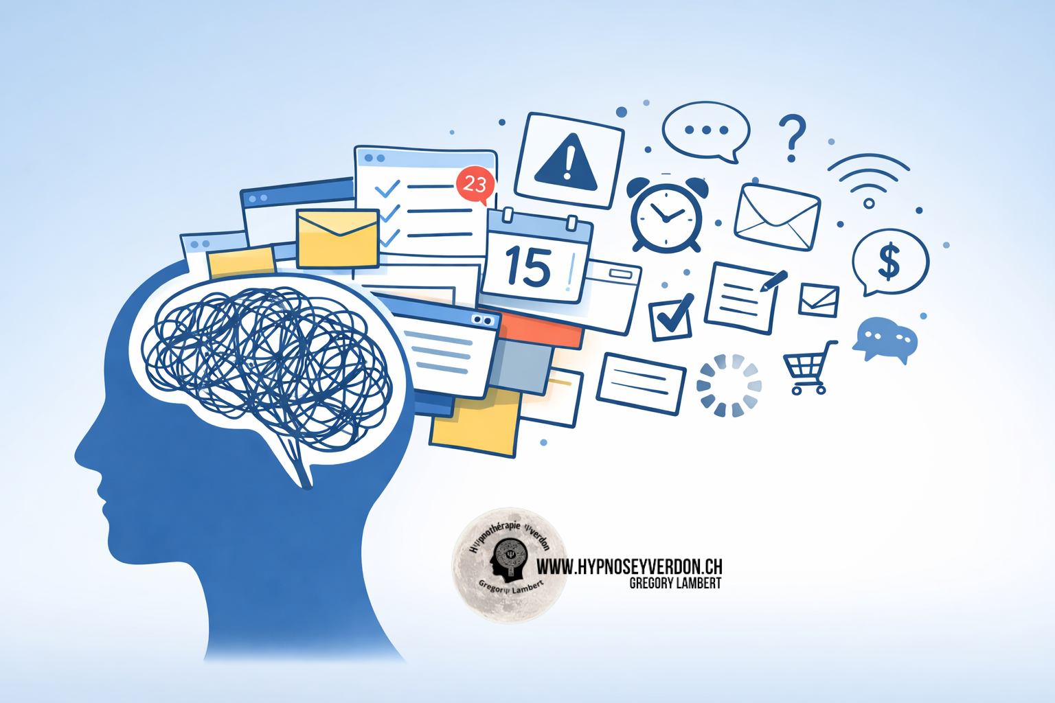 Charge mentale à Yverdon : ruminations & fatigue mentale | Hypnose EMDR EFT